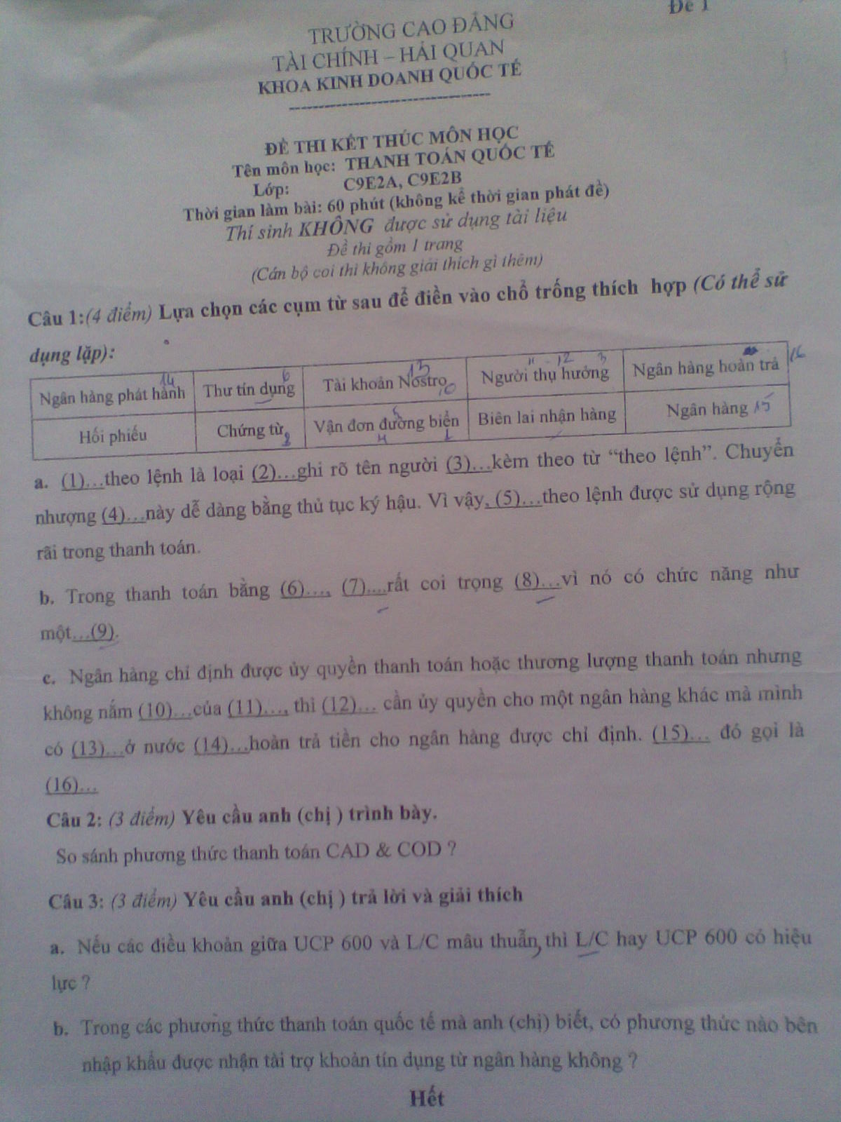 ĐỀ THI THANH TOÁN QUỐC TẾ-C9